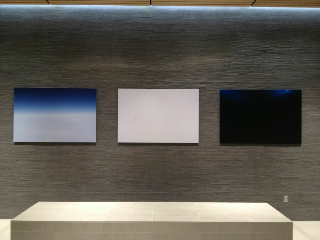 When it enables access to difficult-to-reach places, Blatt travels alongside scientists conducting many different kinds of research. In 2005, for example, she camped and worked in the Atacama Desert in Chile for over a month with a scientist team from NASA and Carnegie Mellon. For the Smith Cardiovascular Research Building, Blatt assembled three photographs created while she was a grantee of the National Science Foundation’s Artists and Writers Program in Antarctica in 2008. This specially selected triptych represents three zones in which scientific research is conducted in Antarctica: in the atmosphere, on the ground, and in ice caves, respectively.